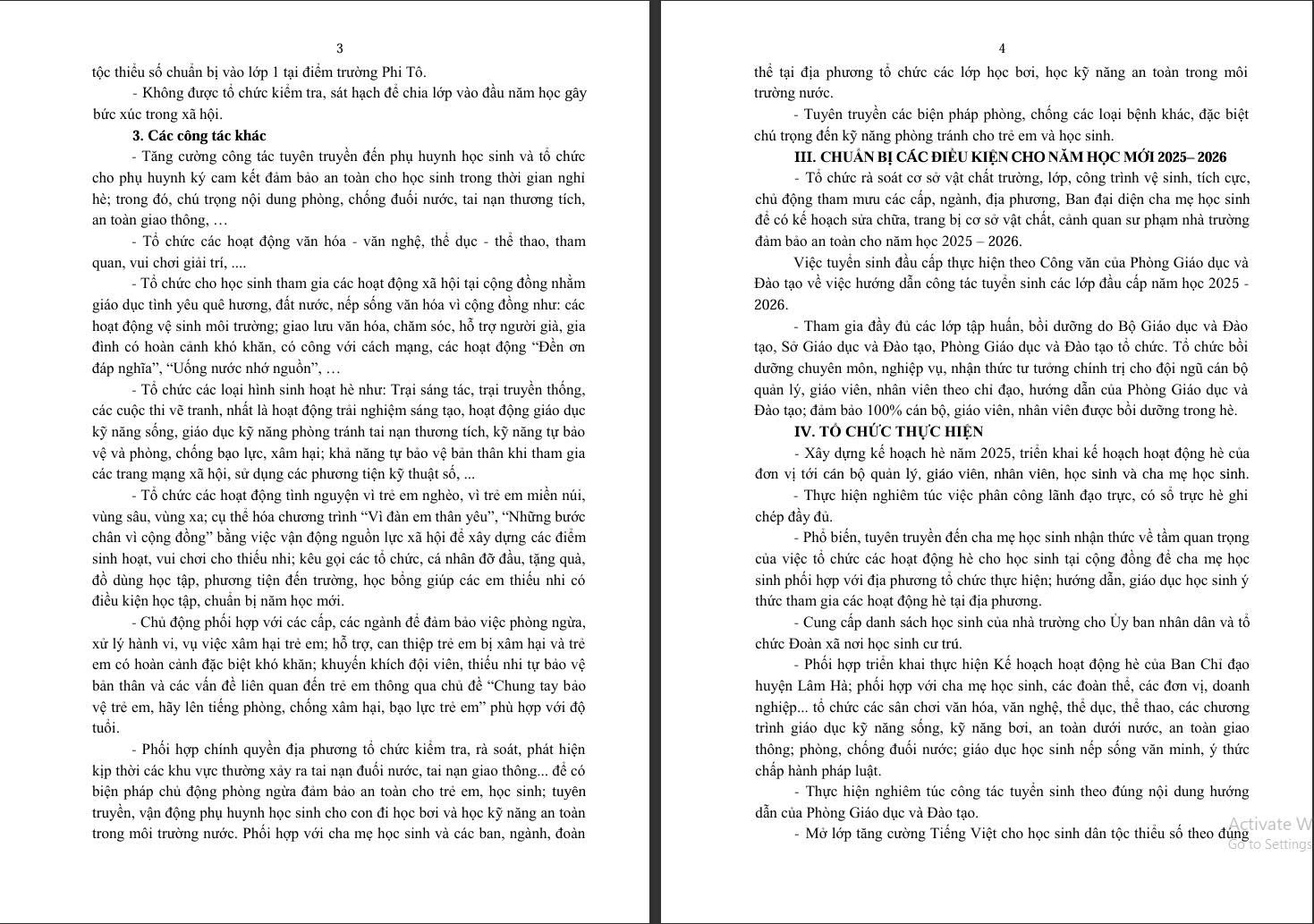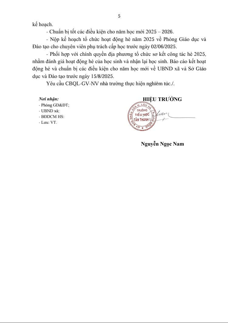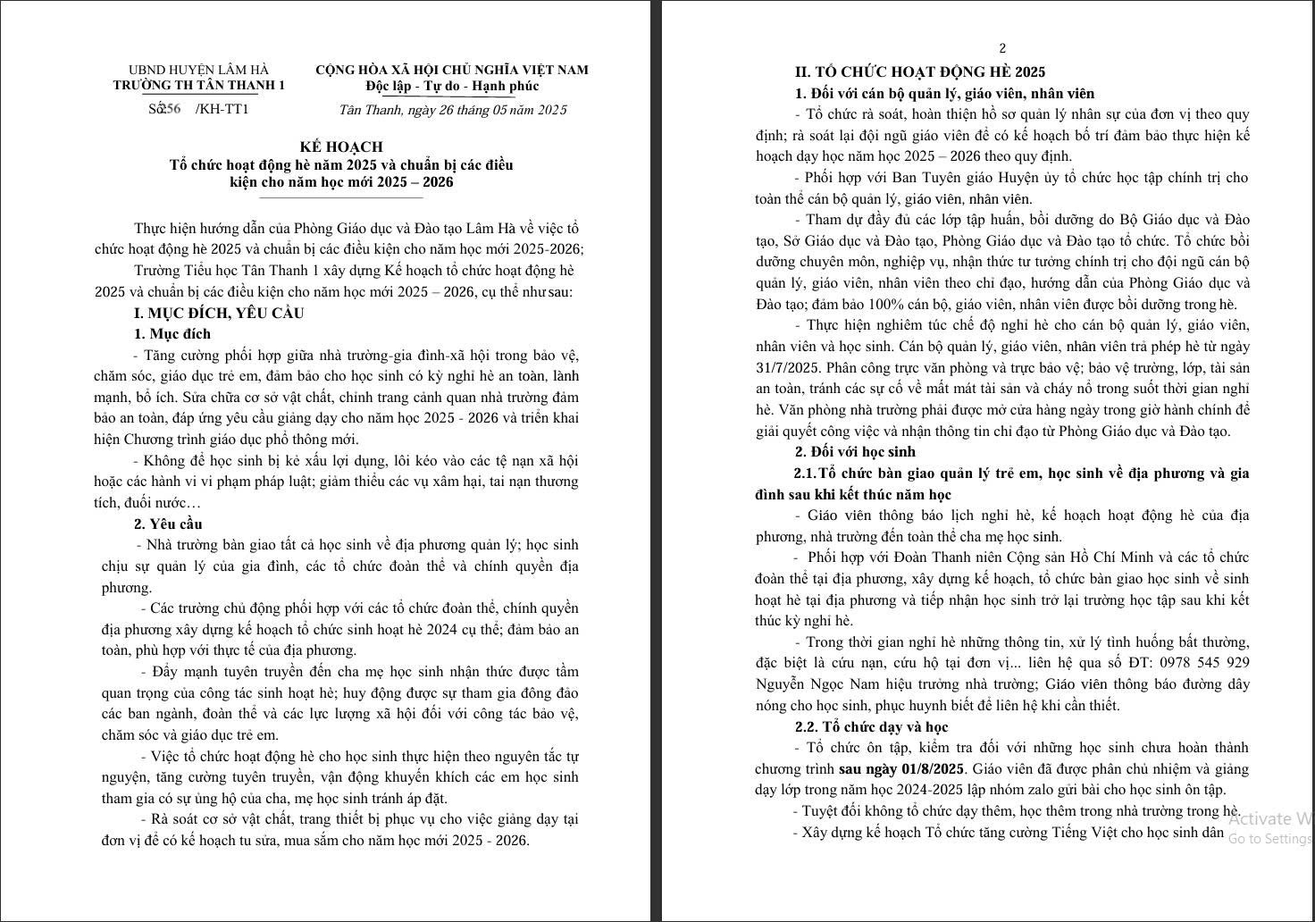 KẾ HOẠCH TỔ CHỨC HOẠT ĐỘNG HÈ NĂM 2025 VÀ CHUẨN BỊ CÁC ĐIỀU KIỆN CHO NĂM HỌC MỚI 2025-2026